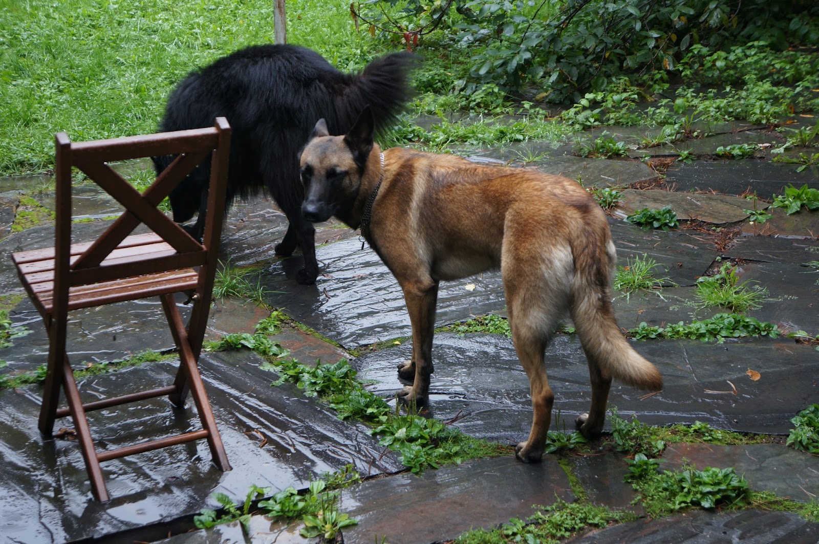 Totta puhuen olisi varmaan pitänyt olla joku hienompi ongelma. Aikaa oli 2 x 15 min per koirakko ja ensin halusin vähän tietää mitä voisin tehdä meidän "tehdäänpäs kisoissa seuraaminen perseelleen" ongelmalle. No häiriötreeniä, eihän se yllätyksenä tullut. Pitäisi viedä Neoa paljon eri paikkoihin; isossa häiriössä leikittäisiin vaan ja yritettäisiin pitää huomio koko ajan touhussa, sitten otettaisiin vähitellen liikkeitä mukaan. Toisena ongelmana esitin sitten liikkeestä maahanmenon hitauden. Katja ehdotti, että ensin opettaisin Neolle maahanmenon hypyn kautta varmaksi ennen kuin siirrän sen sivulle. Eli että koira "läimäyttää" etutassut maahan, en ole tuollaista versiota vaatinut. Mitäs vielä opittiin... No sitä, että ensin pitäisi aina antaa sosiaalinen kehu ja sitten vasta herkut/lelut. Vähän tulee kieltämättä käytettyä pelkkää sosiaalista palkkaa.